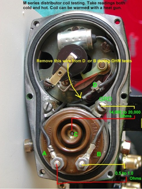 Carter, great pic........thanks! For coils that are out of the distributor the way I remember how to check resistance is;